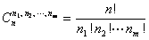 [多组组合] 把n个不同的元素分成m组,第i组有ni个不同的元素,即