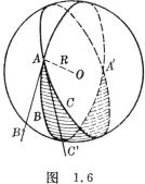 球面二角形ABA'C的面积(图1.6阴影部分)