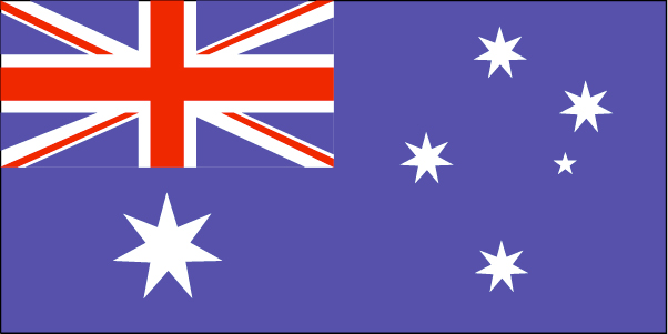 澳大利亚国旗为长方形,长与宽之比为2:1。旗地为深蓝色,旗地的左上角为英国国旗图案(红、白“米”字),表明澳大利亚与英国的传统关系。“米”字图案下面为一大颗白七角星,旗地右边为4颗白色七角星和1颗小白色五角星。最大的1颗白色七角星代表澳大利亚的6个州和北部自治区,旗地右边的4颗白色七角星和1颗白色五角星代表南十字星座,为“南方大陆”之意,表明该国处于南半球。此国旗1903年启用。原来旗地左边的大的白色七角星为六角星,代表新南威尔士等6州,1908年改为七角星。