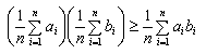 [契贝谢夫不等式] 设ai>0, bi>0 (i=1, 2, L , n).若a1£ a2£ L £ an, 且b1£ b2£ L £ bn, 或a1³ a2³ L ³ an, 且b1³ b2³ L ³ bn, 则