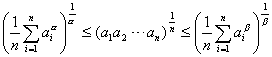 [詹生不等式] 设ai>0 (i=1, 2, L , n),且0<r£ s,则