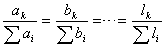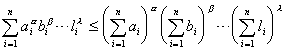 1o 设ai, bi, L , li(i=1, 2, L , n)为正数,又a , b , L , l 为正数,且a +b +L +l =1,则