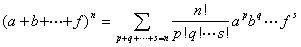 和式中每一数组(p, q,L,s)对应一项,这个数组满足0£p£n, 0£q£n, L, 0£s£n, p+q+L+s=n,