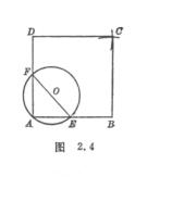 [已知边长作正方形] 已知AB等于边长.以AB外任一点O为圆心,OA为半径画圆交AB于E.连接EO并延长交圆于F,连接AF并延长截取AD=AB.分别以B,D为圆心,AB为半径画弧交于C,连接BC,DC,□ABCD即为所求正方形(图2.4).