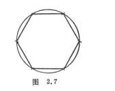 [已知外接圆作正六边形] 以外接圆半径在其圆周上顺次截段,并连接各点,即为所求正六边形(图2.7).
