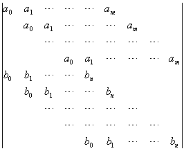 这个m+n阶行列式R(f,j)称为多项式f(x)和j(x)的结式,式中空白处的元素都是零.结式具有性质: