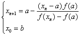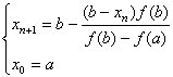 假设f(x)在[a,b]上连续,,都不变号,且f(a)f(b)<0(这里假定f(a)<0,f(b)>0).过点(a,f(a))和(b,f(b))的直线是: