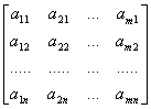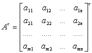 [转置] 把m´n矩阵A=(aij)的列同行互换后所得到的n´m矩阵称为A的转置矩阵,记作