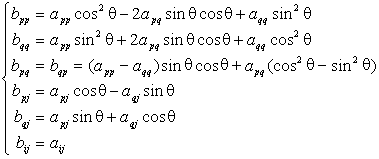 为A的旋转变换,q 称为旋转角,如果A是对称矩阵,那末B的元素bij与A的元素aij有