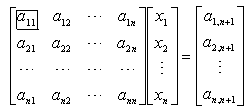 为主元素,可先将第i个方程与第1个方程互换位置,再把未知数x1和xj的次序调换,那末得到新的系数矩阵,其主元素必在第1行第1列上).将第1个方程乘以
