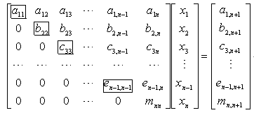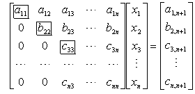 次之后,消元过程结束.原来系数矩阵已经化成上三角形矩阵(这时未知数的次序已做了若干次调换).