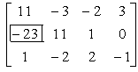 (1)第2 行第1列的元素-23是主元素,用□框起来,并用矩阵表示成