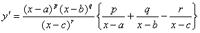 lny=pln(x-a)+qln(x-b)-rln(x-c)