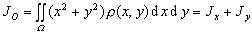 [薄板的转动惯量] 设Oxy平面内薄板Ω的密度为ρ=ρ(x,y),对于x轴,y轴,原点O的转动惯量分别为,则
