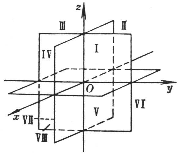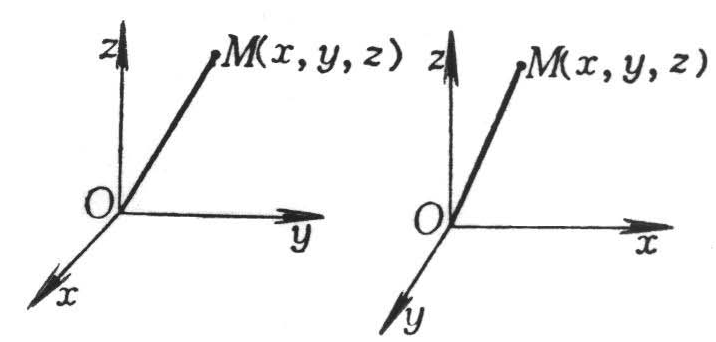 Ox为横轴,Oy为纵轴,Oz为竖轴 M(x, y, z)