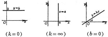 k为斜率.若直线与x轴的交角为a ,则 b为纵截距 |