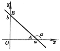 a,b分别为x轴,y轴上的截距. 该直线通过A(a, 0)和B(0, b)两点. 与x轴的交角