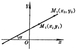该直线通过M1(x1, y1)与M2(x2, y2)两点, 与x轴的交角