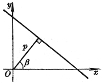 p为法线长(原点O到直线的垂线长),b 为法线与x轴的交角,p, b 称为直线的位置参数. [注]直线一般式可化为法线式 式中 |
