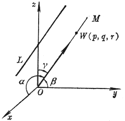 通过原点且平行于直线L的直线OM上任意一点W的坐标(p, q, r)称为直线L的方向数,而