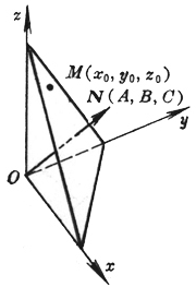 平面通过点M(x0, y0, z0),且法线N的方向数为A, B, C
