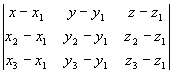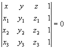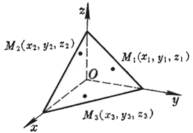 平面通过三点: M1(x1, y1, z1) M2(x2, y2, z2) M3(x3, y3, z3) |