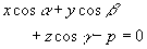 (a , b , g 为平面的法线的方向角,p³ 0为法线长即原点到平面的距离) |