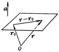 平面 通过矢径r0的终点,且与已知矢量a垂直,r为平面上任意一点的矢径 |