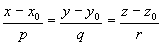 直线L通过点M(x0, y0, z0),且具有方向数p, q, r