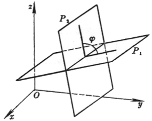 [二平面的夹角] P1 A1x + B1y + C1z + D1 = 0 P2 A2x + B2y + C2z + D2 = 0