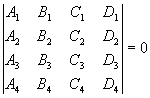 ,m 的一对确定值, 设P4为A4x + B4y + C4z + D4 = 0,则四个平面P1, P2, P3, P4共点的条件为行列式 |