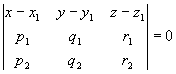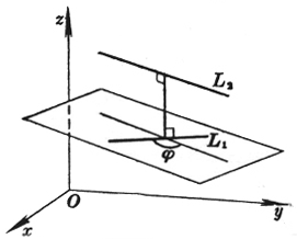 所谓最短距离是指L1, L2的公共垂线与此两线交点之间的距离,式中正负号与行列式取同号.从此推出二直线共面的条件为d=0,所在平面的方程为 |