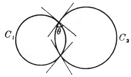 两个圆的交角 C1 x2 +y2 +2m1x +2n1y +q1 = 0 C2 x2 +y2 +2m2x +2n2y +q2 = 0 两个圆的交角是指它们在交点的两条切线的夹角
