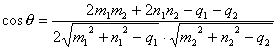 式中q 表示两个圆C1和C2的交角,因为公式中不包含交点的坐标,所以在两交点的两交角必相等. 两个圆C1和C2正交条件为 2m1m2 + 2n1n2 - q1 - q2 = 0 |