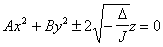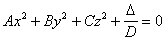 A,B,C, 同号时为椭球面 A,B,C, 异号时为双叶双曲面 |
