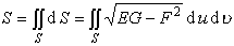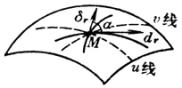 ds2=Edx22fdxdy+Gdy2 式中 E=1+ F= G=1+ ds为点M(x,y,z)处的弧的微分,ds2称为第一基本二次型,E,F,G称为第一基本量 ds2= 式中 E= F= G= 第一基本量E,F,G都在点M处取值. 曲面上每点(奇点除外)的第一基本二次型是正定的,即 E>0,G>0,EG-F2>0 |