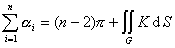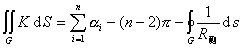 [高涅-波恩涅公式] 设G为曲面S上一个单连通区域,G的边界C是一条逐段光滑并无自交点的闭曲线,其运行的方向是使G总是在它的左侧.