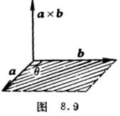 ,则定义a×b为两矢量的矢量积(也称为叉积或外积),它是一个矢量,即长度等于以a,b为边的平行四边形的面积(图8.9阴影部分)