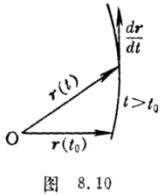 表示矢端曲线的切线矢量(图8.10),指向t增加的方向,式中
