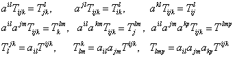 相乘与缩并来“降低”张量的逆变指标.这种运算称为指标的升降.例如Tijk就可由aij和aij升降: