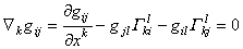 度量张量gij的协变导数等于零,即