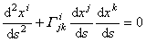 黎曼空间Vn中的自平行曲线(也称为测地线)和仿射联络空间中自平行曲线的情况完全一样,都由微分方程