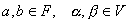 [线性运算] 设F是一个域,其元素a,b,c,…作为数量;V是任一种类对象的集,其元素用希腊字母α,β,γ,…表示. 确定两个运算法则: