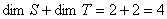 [第二维数定理] 设S与T是线性空间V的两个子空间,则