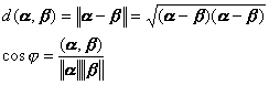 在本节第一段中,已经引入酉空间中的每个矢量α的模(范数). 酉空间中两“点”(即矢量)α,β的距离与任二矢量α,β之间的角度的定义如下: