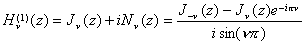 分别称为第一类和第二类汉克尔函数,它们在除去半实轴