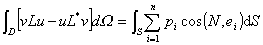 式中S为区域D的边界,N为S的外法线矢量,ei为xi的轴的矢量