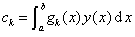 如果F(x)不恒为零,但与g1(x), g2(x), L,gn(x)正交,即bi=0 (i=1,2,Ln)。那末方程组(3)仍为齐次的,以上的讨论也适用,除非这里积分方程的解也包含函数F(x)。这样平凡值 c1= c2=L= cn=0导出解y=F(x)。对应于l的特征值的解是F与特征函数的任意倍数之和。