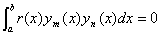 1°  对应于不同特征值l ml n的两个特征函数ym(x)yn(x)[a,b]上关于权函数r(x)是正交的,即