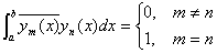 1°  对应于不同特征值l ml n的两个特征函数ym(x)yn(x)[a,b]上是按埃尔米特意义正交的:
